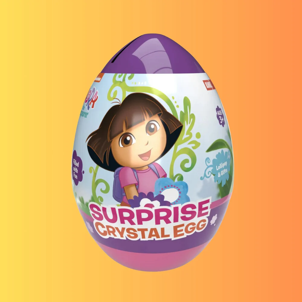 A Surprise Crystal Egg izgalmas Dóra A Felfedező témájú meglepetés tojás, amely finom édességet és praktikus perselyt rejt. Kiváló ajándék gyerekeknek és rajongóknak egyaránt.