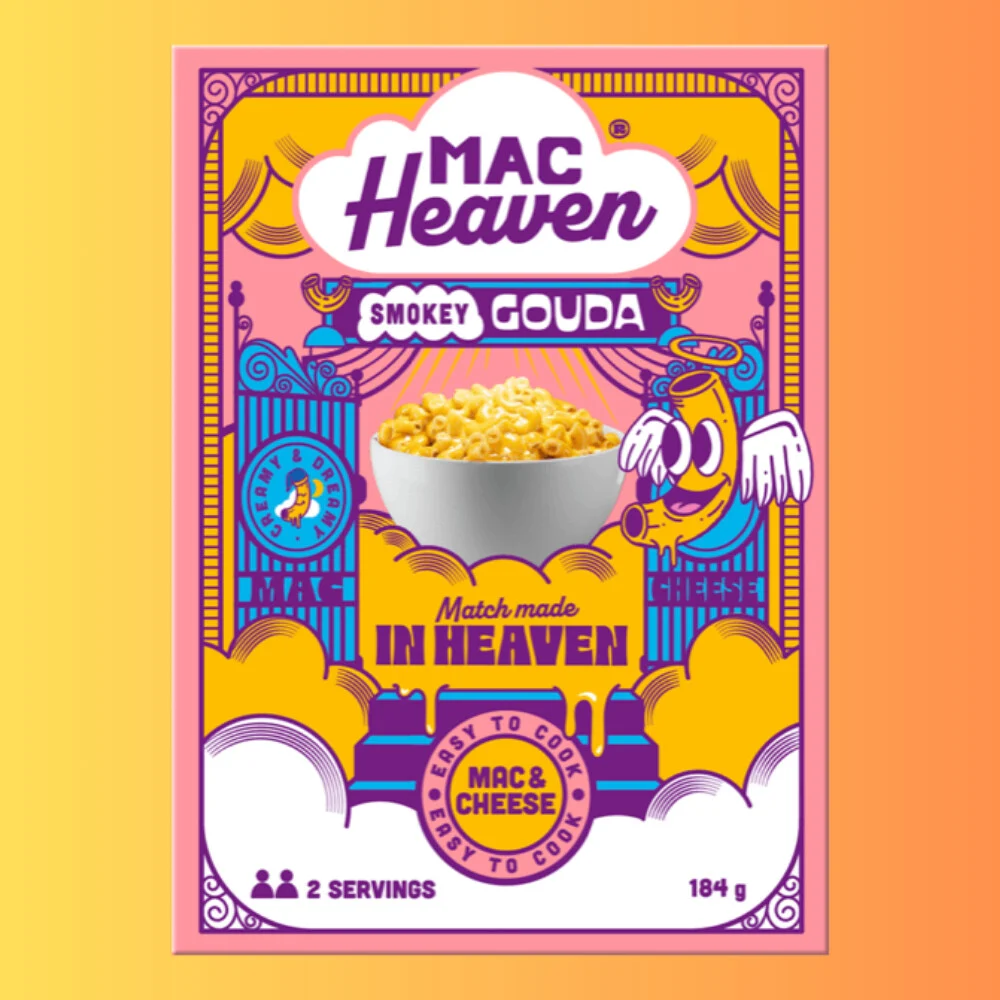 A Mac Heaven Mac & Cheese Smokey Gouda egy ízletes, gazdag mac & cheese élményt nyújt, valódi, füstös gouda ízzel. A legfinomabb alapanyagokból készül, és a krémes textúrát ötvözi a gouda sajt mély, füstös aromájával, hogy egy igazán ízletes ételt kínáljon, amely bármely napszakban tökéletes választás. Fedezd fel a Mac Heaven-t, és hagyd, hogy egyedülálló ízvilága elkalauzoljon a macaroni és a sajt csodálatos világába!