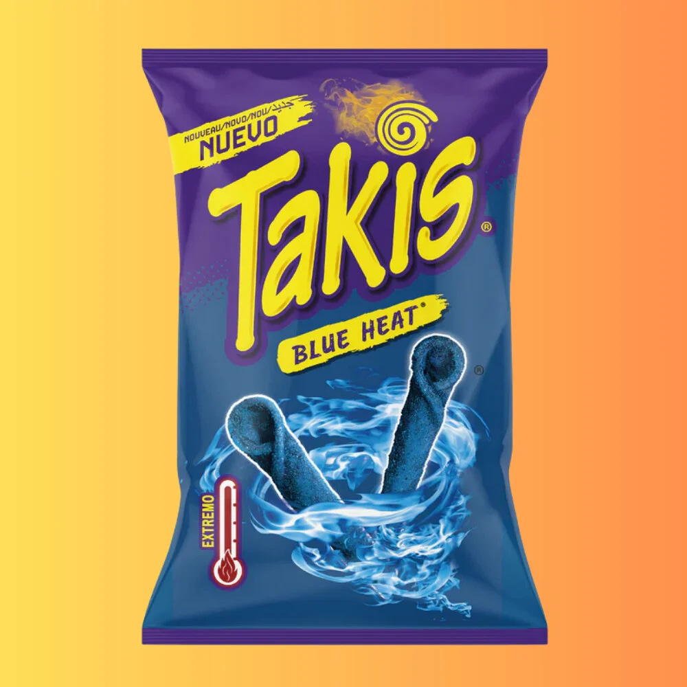 A Takis Blue Heat 90 g egy rendkívül csípős, hengeres kukoricachips, mely intenzív, forró chili paprikás ízzel robban a szájban – ideális választás a vállalkozó szellemű snackek kedvelőinek.