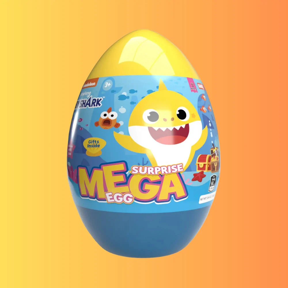 A Mega Surprise Egg egy szórakoztató, Baby Shark témájú meglepetés tojás, amely édességet és egy praktikus perselyt rejt. Ideális ajándék gyerekeknek és gyűjtőknek egyaránt.