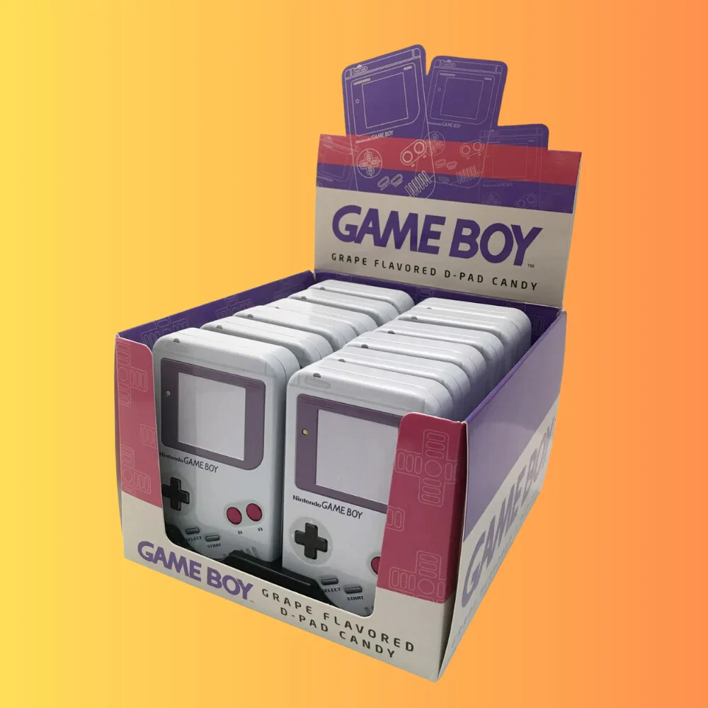 Ez a doboz Game Boy kézi konzol formájú. A dobozban szőlő ízű cukorkák találhatók.