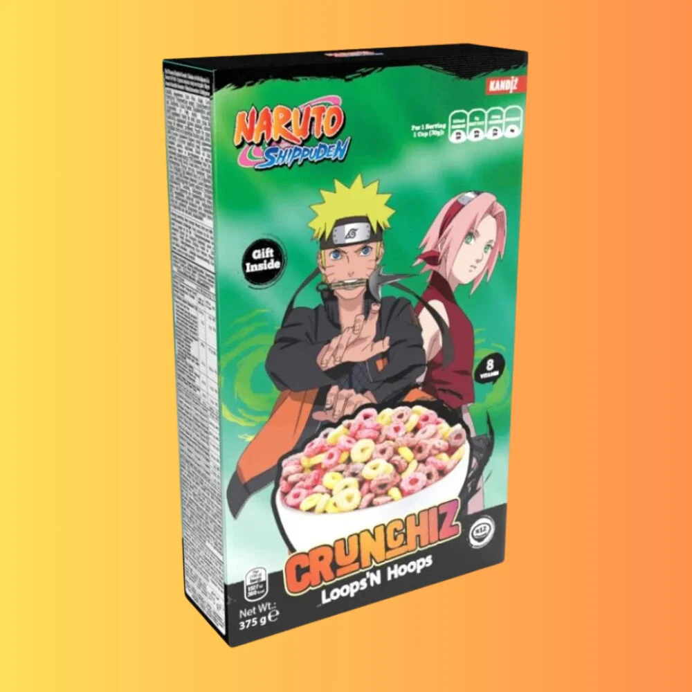 A Loops N’ Hoops Naruto Cereal színes, ízletes gabonapelyhek válogatása, amely vidám reggeli élményt nyújt minden Naruto rajongónak. Ropogós textúrája és gazdag ízvilága energikusan indítja a napot, miközben a doboz meglepetést is rejt.