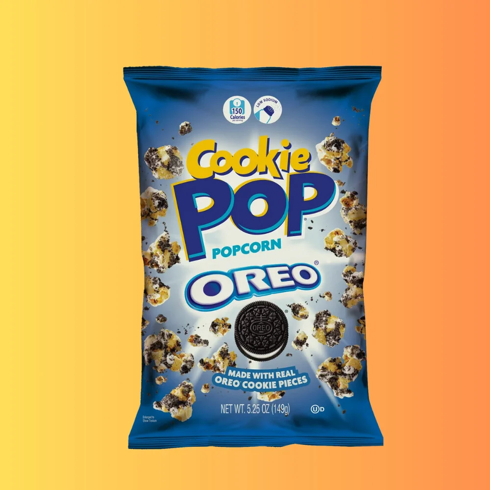 Bevonat (cukor, pálmamagolaj, zsírmentes száraz tej, tej, szójalecitin (emulgeálószer), só), pattogatott kukorica, Oreo sütidarabok [cukor, búzaliszt, módosított pálmaolaj, növényi olaj, kakaó, kukoricakeményítő, szódabikarbóna, szójalecitin, só, monokalcium-foszfát, ammónium-hidrogén-karbonát, cukrozatlan csokoládé, természetes aroma], napraforgóolaj, nádcukor, mesterséges aroma. Tartalmaz: tejet, szóját és búzát.