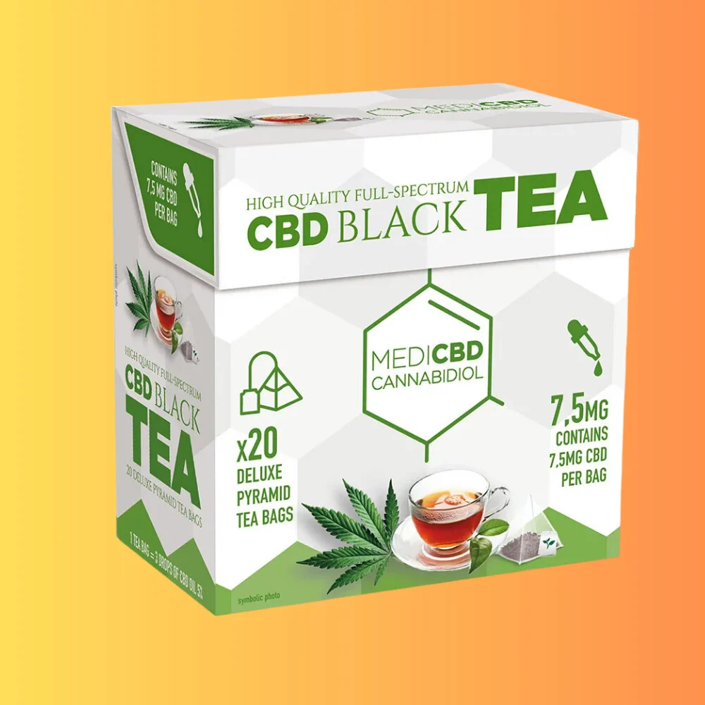100%-ban legális a fogyasztása az Európai Unióban (EU) THC MENTES (0% THC) – Nincs tudatmódosító hatás Készült az EU-ban Tartalom: 20 Deluxe teafilter Filterenként 7,5 mg CBD-t tartalmaz Összetevők: Fekete tea kannabisz kivonatokkal.